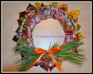 Note: The only change that I may make next time, would be to individually coat each leaf with mod podge, letting them dry, and then gluing the leaves onto the paper ring. This method may give the wreath more depth. If you try it using this method, please let me know how it turned out.